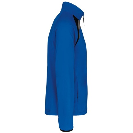Kindertrainingsjas 100% tricotpolyester: heel sterk 2 zijzakken. 100% gebreid polyester. Ritssluiting. Inzetstukken in contrastkleur op de borst en mouwuiteinden. 2 zakken. Elastische mouwuiteinden. Kan gecombineerd worden met de PA102.