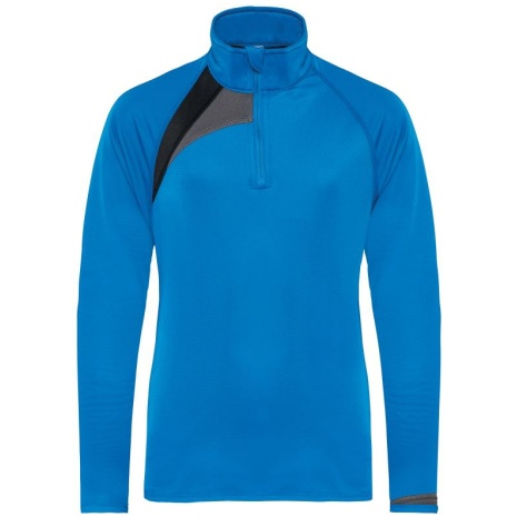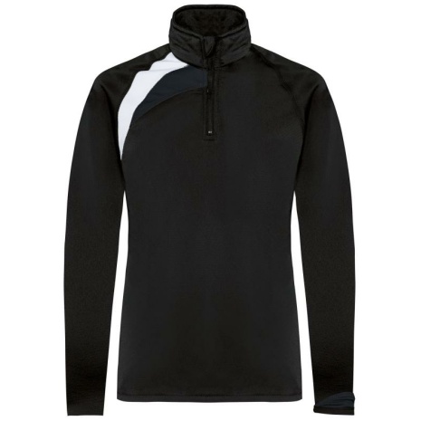 Kindertrainingsweater Met Ritskraag Ton-sur-ton naden aan de overlocksteken. Ton-sur-ton naden aan de overlocksteken voor een onberispelijke afwerking. 100% gebreid polyester. Binnenkant geborsteld. Halsrits. Inzetstukken in contrastkleur op de borst en mouwuiteinden. Overstiksels toon op toon. Onderkant en mouwuiteinden met elastisch boord.