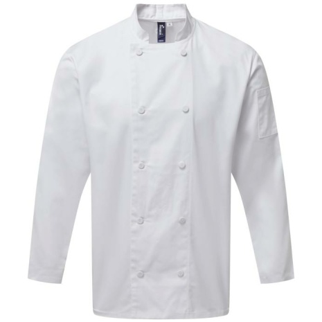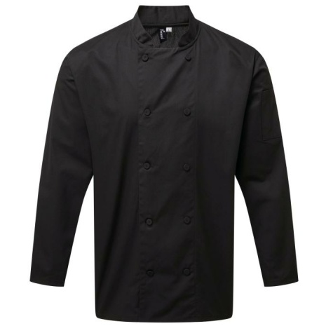 Koksjasje met lange mouwen Coolchecker® Dubbele pennenzak op de linkermouw. Sterke knopen van hars. 65% polyester / 35% twillkatoen. Middenpaneel op de achterkant, gemaakt van Coolchecker®-stof die vocht en zweet afvoert. Sluit op de voorkant met tien stoffen knopen. Maokraag met rits in de nek. Dubbele pennenzak op de linkermouw. Thuis wassen op 60 °C.