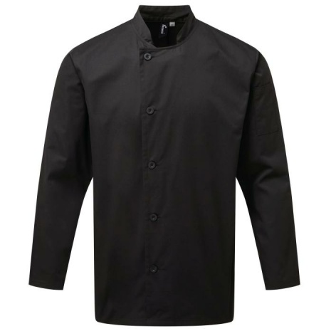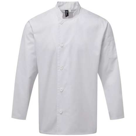 Koksjasje met lange mouwen “Essential” Sterke knopen van hars. Dubbele pennenzak op de linkermouw. 65% polyester / 35% twillkatoen. Sluit met vijf knopen van superieur hars. Zak voor twee pennen op de linkermouw. Maokraag. Industrieel wassen op 85 °C. Thuis wassen op 60 °C.