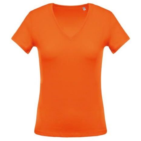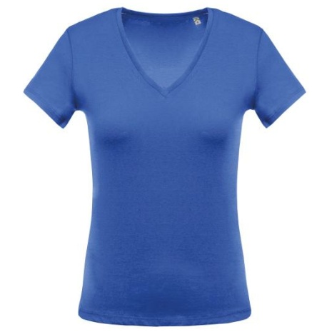 Ladies’ short-sleeved V-neck T-shirt. No label, voor eenvoudige personalisatie.