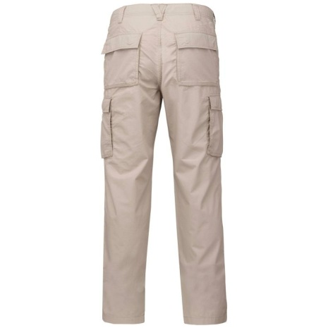 Lichte herenbroek met diverse zakkenย Licht en comfortabel. Onmisbare workwear. Verwassen stof van katoenpopeline voor een soepele look. Handig en heel functioneel. 100% popelinekatoen. Verwassen stof voor een soepele en comfortabele look. Aanrijgkoordjes op de taille binnenin. Ritssluiting met drukknoop. 2 Italiaanse zijzakken + 1ย muntzak. 2 opgezette plooizakken met klep en drukknoop aan de achterkant en zijkant. Inzetstukken op de knieรซn.