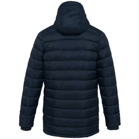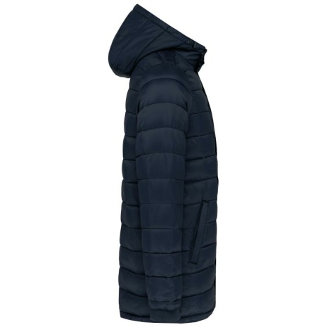 Lichte herenparka met capuchonย Lange parka in een sportieve, casual stijl. Mouwuiteinden van ribboord om de koude uit de mouwen te houden. Warm, comfortabel en ultralicht. 100% polyamide. Binnenvoering van polyester. Warm en ultralicht. 2 zakken aan de voorkant en 1 borstzak met rits en biesjes. Verborgen ritssluiting met dubbele schuiver onder een drukknooplijst. Binnenkant kraag en mouwuiteinden in ribboord. Contrasterende binnenkant capuchon en lichaam : Convoy Grey voor Zwart. Effen binnenkant capuchon en lichaam: Navy voor Navy.