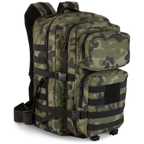 M.O.L.L.E. Rugzakย Extreem sterk en duurzaam dankzij een speciale polyvinylbekleding. Geรฏnspireerd op de tactische militaire rugzakken, met talloze opbergingen en voorzieningen, ideaal voor outdooractiviteiten. Bevestigingssysteem van het type M.O.L.L.E om snel accessoires vast te maken. 100 % polyester. M.O.L.L.E. rugzak in 600D polyester met polyvinyl coating voor extra stevigheid en duurzaamheid. Ideaal voor outdoor activiteiten, de rugzak heeft zakken voor waterzakken, gaatjes voor de waterslangetjes, een groot compartiment vooraan, klittenband, M.O.L.L.E. webbing, compressie banden, ergonomisch design en verstelbare gewatteerde schouderbanden.camouflage print.