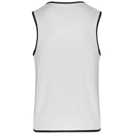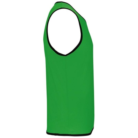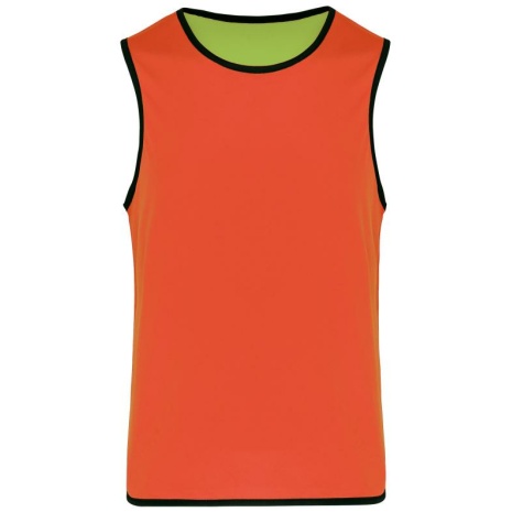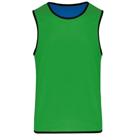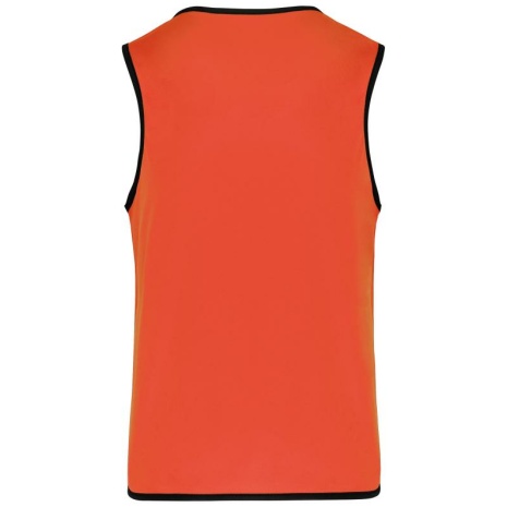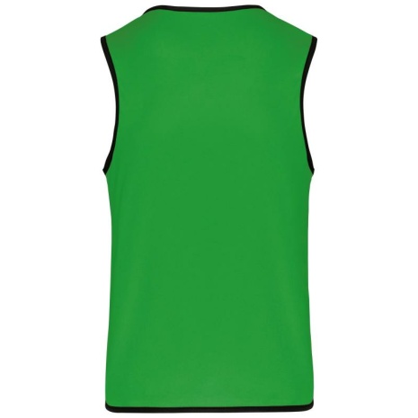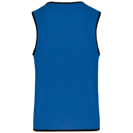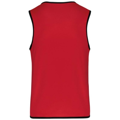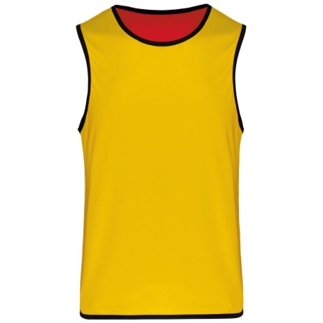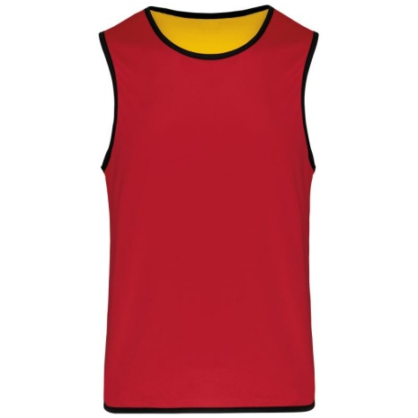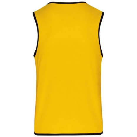 Omkeerbaar rugbyhesje 2 genaaide lagen Verstevigde elastische biezen voor een betere wrijvingsweerstand. 100% polyester. 2 genaaide lagen van elk 160 g/m². Contrasterend elastisch en versterkt boordje aan hals, mouwopeningen en onderkant voor een betere wrijvingsweerstand.