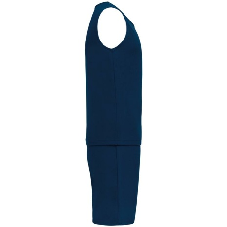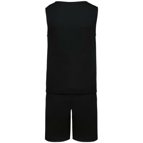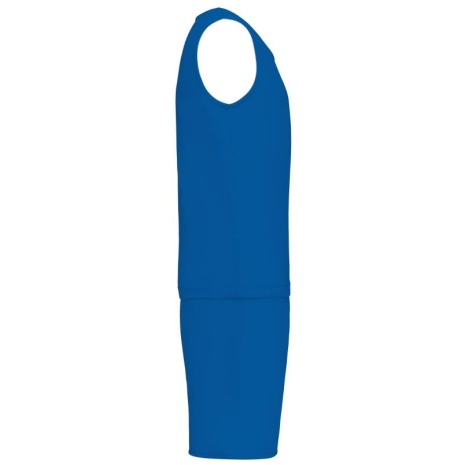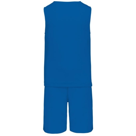 Omkeerbare basketbalset voor kinderen 100% polyester: heel sterk, licht en ademend. Omkeerbare, gevoerde stof. Niet-samengestelde onderkant voor een eenvoudige personalisatie. 100% polyester. Gevoerde en omkeerbare stof. Unisex set bestaande uit een mouwloos shirtje en een short. Shirtje: omkeerbaar en bestaande uit 2 genaaide lagen van elk 150 g/m². Niet-samengestelde onderkant voor een eenvoudige personalisatie. Short: omkeerbaar en bestaande uit 2 genaaide lagen van elk 150 g/m². Elastische tailleband met aanrijgkoordjes.