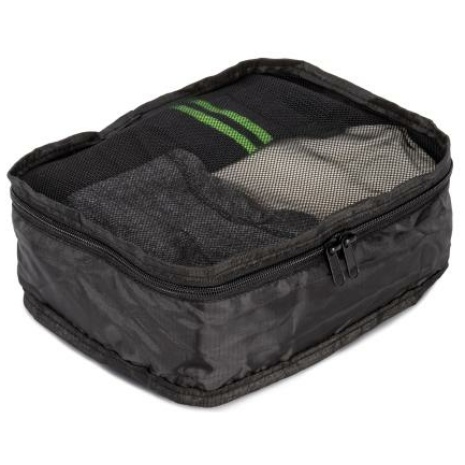 Opberghoes om bagage te organiseren – Klein formaatย Sterk en scheurbestendig. Heel handig, kan worden opgevouwen en opgeborgen in een tasje. Onmisbaar om alles mooi te organiseren op reis. 100 % polyester. Opberghoes van Polyester 190 TPU Ripstop om bagage te organiseren. Ideaal voor ondergoed en accessoires.Bovenkant van mesh. Kan worden opgevouwen en opgeborgen in een handig zakje. Ring om te bevestigen aan ieder type van sluithaak. Klein formaat.
