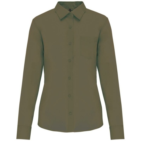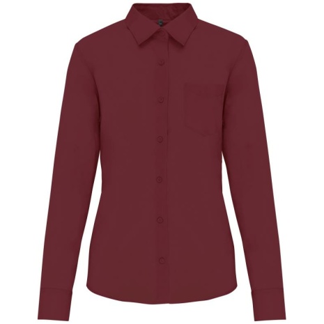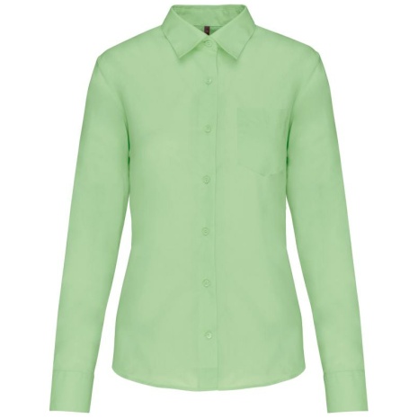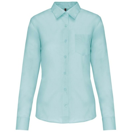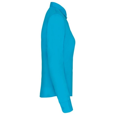 Overhemd in onderhoudsvriendelijk polykatoen-popeline dames Gemaakt uit polykatoen, voor een gemakkelijk onderhoud. Sterk en stijlvol. Keuze uit 30 kleuren. 65% polyester / 35% katoen Gemakkelijk in onderhoud ( Easy Care). Kraag zonder knopen. Toon op toon knopen. Borstzakje links in v-vorm. Verstelbare mouwen scheurbestendige afgeronde mouwuiteinden. 1 extra knoop. Afgerond boord aan de onderkant.
