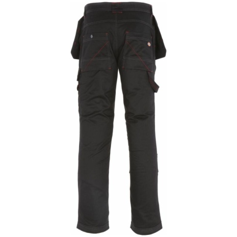 Redhawk Pro Trousers (EX. DWD801)ย Veel handige zakken. Uitneembare kniebeschermingszakken. Dik en sterk materiaal. 65% polyester / 35% katoen. Broek met meerdere zakken: gereedschapzak aan de riem, zakken voor kniebeschermers met klittenbandsluiting, meterzak, cargozak, achterzak links met overslag en drukknoop, versterkte achterzakken, hamerlus. Maat in de catalogus is de Franse maat.