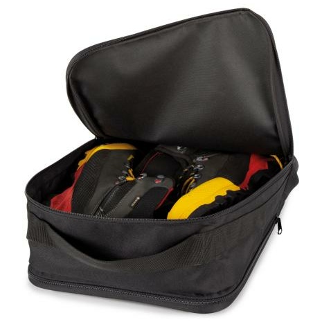 Schoenentasย Grote inhoud. Zeer stevige handgreep. Stevig en makkelijk personaliseerbaar polyester. 100 % polyester. Deze tas heeft twee vakken en is ruim genoeg voor trekking- of veiligheidsschoenen. De handige handgreep zit om de tas heen om hem te verstevigen.