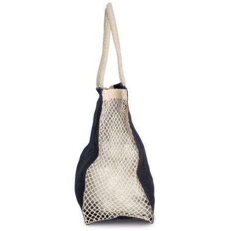 Shopper met plooi van mesh. Katoenen handvatten met touw aan de binnenkant voor meer comfort en stevigheid.