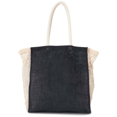 Shopper met plooi van meshย Katoenen handvatten met touw aan de binnenkant voor meer comfort en stevigheid. Sterke, ecologische, natuurlijke en plantaardige stoffen. Plooi van katoenmesh om de zak optimaal te vullen. 100% jute / 100% katoen. Shopper van jute met plooi van katoenmesh. Katoenen hengsels met binnenkoord in naturel kleur. Natural Kleur: