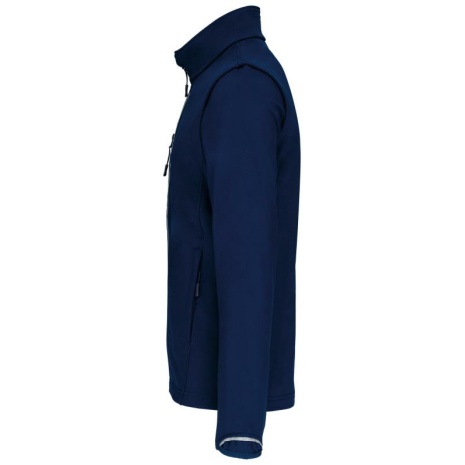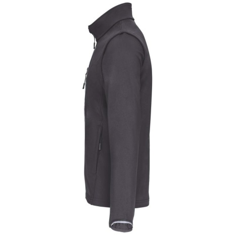 Softshell met afritsbare mouwen 5% elasthan voor meer comfort. 3-laagse ademende stof 3000 g/m²/24 u en waterdicht 8000 mm. Afneembare mouwen. Stof in 3 lagen aan elkaar geklit, ademend 3000 g/m2/24H en 8000 mm waterdicht. Buitenkant: 95% polyester / 5% elasthan. Tussenlaag: ademend membraan. Binnenkant: microfleece. Ritssluiting met reflecterende bies. 2 zijzakken met rits en 1 borstzak met rits. Afneembare mouwen. Elastische mouwuiteinden met reflecterende bies.