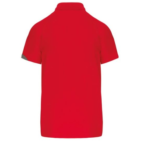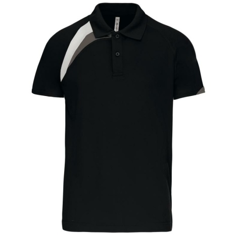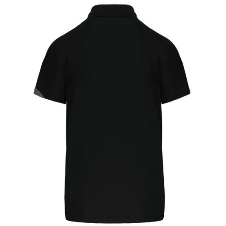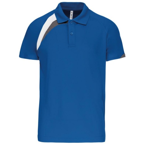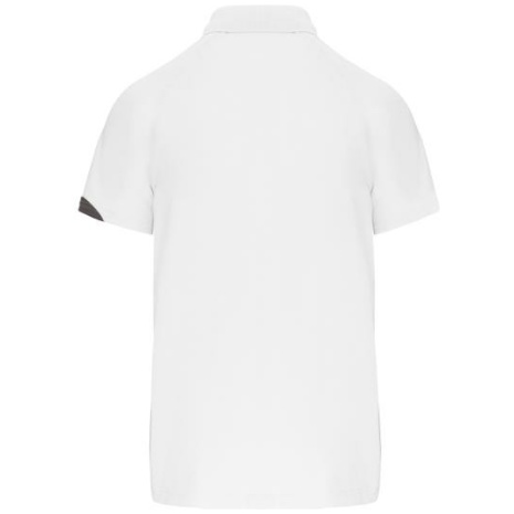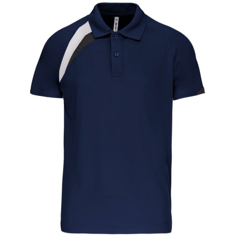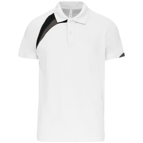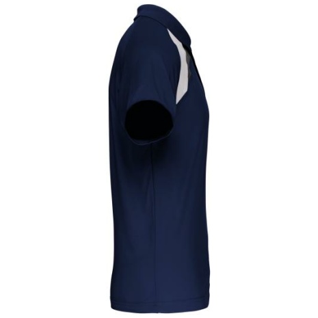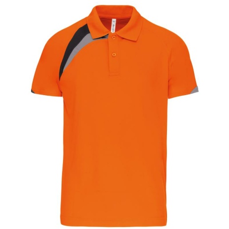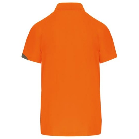 Sport polo Korte Mouwen 100% polyester: heel sterk, licht en ademend. 100% polyester. Inzetstukken in contrastkleur op de borst en mouwuiteinde. Kraag in rib 1×1. 2 toon op toon knoopjes. Afwerking met toon op toon overstiksels. Afwerking met dubbele stiksel onderaan en aan de mouwuiteinden.