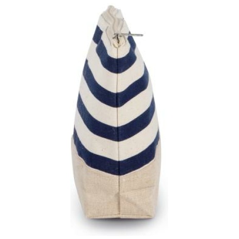 Tasje met marineprint voor accessoiresย Sterke, ecologische, natuurlijke en plantaardige stoffen. Ritssluiting om het zakje gemakkelijk te openen en sluiten. Past perfect bij de handtas met marineprint KI0283. 70% jute / 30% katoen. Tasje voor accessoires of toilettas van katoen en jute, met een ritssluiting.Past perfect bij de handtas met marineprint KI0283.