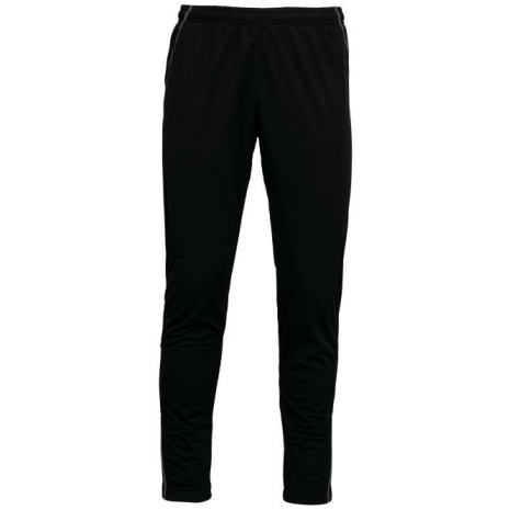 Trainingsbroek Geborsteld tricot voor meer comfort en zachtheid. Blijft goed zitten dankzij de elastische tailleband met aanrijgkoordjes. Antislipband onder aan de benen. 100% gebreid polyester. 1 zak aan de rechtkant. Elastische tailleband met aanrijgkoord. Onderkant broekspijpen met inzetstuk met ritssluiting. Anti-slip band. Overstiksels in contrastkleur.
