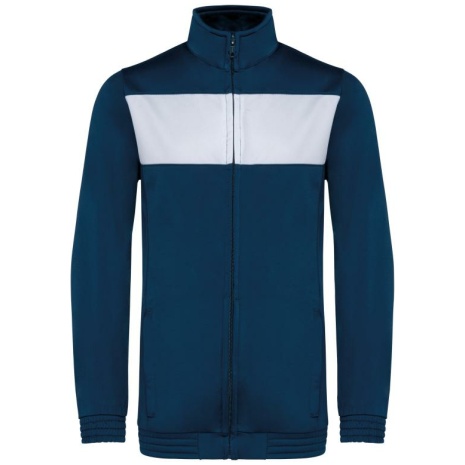 Trainingsjas kids 100% tricotpolyester: heel sterk. 2 ritszakken aan de zijkant. Moderne, fitted pasvorm. 100% tricotpolyester. Ritssluiting. Contrasterend inzetstuk borst. 2 ritszakken aan de zijkant. Elastische mouwuiteinden en onderkant kledingstuk. Moderne, fitted pasvorm.