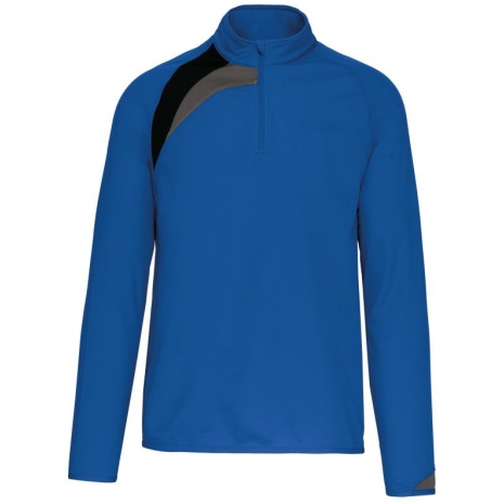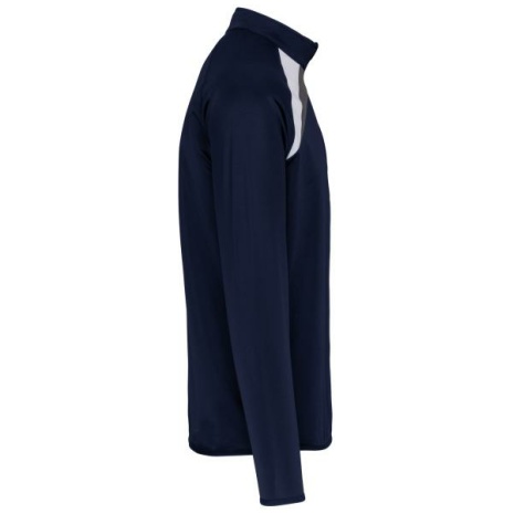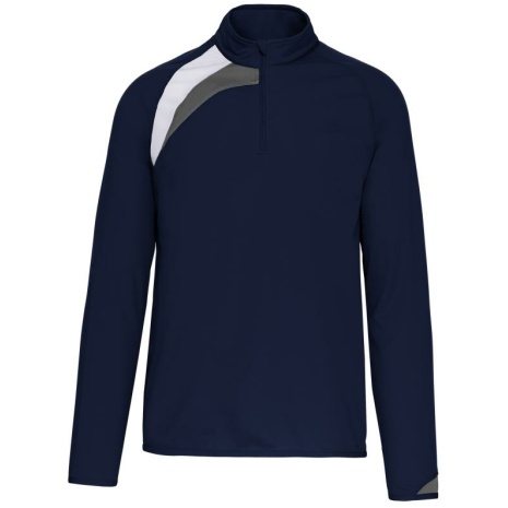 Trainingsweater Met Ritskraag 100% geborsteld tricotpolyester: heel sterk en comfortabel. Ton-sur-ton naden aan de overlocksteken voor een onberispelijke afwerking. 100% gebreid polyester. Binnenkant geborsteld. Halsrits. Inzetstukken in contrastkleur op de borst en mouwuiteinden. Overstiksels toon op toon. Onderkant en mouwuiteinden met elastisch boord.