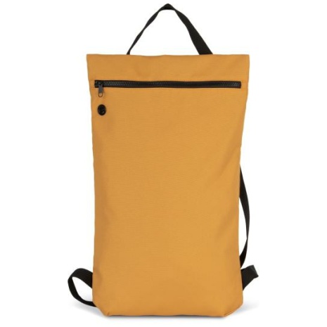 Trendy, platte en gerecycleerde rugzak. Ecologische rugzak van 60% gerecycleerd polyester.