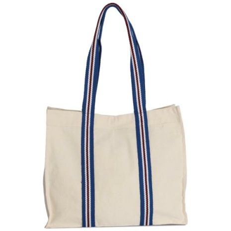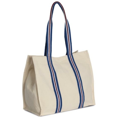Trendy shopper van biologisch katoenย 100% biologisch katoen OCS100-label, afgeleverd door Ecocert Greenlife. Contrasterende gestreepte handvatten voor een originele en aantrekkelijke look. Magnetische knop voor een snelle en handige sluiting. 100% katoen. Shopper met plooi. Gemaakt van 100% biologisch katoen. Hengsel met contrasterende strepen. Binnenzak. Sluiting met een magnetische knoop.