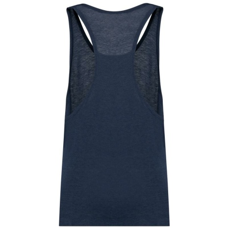 Triblend herentop. Uitgesneden rug voor meer bewegingsvrijheid.