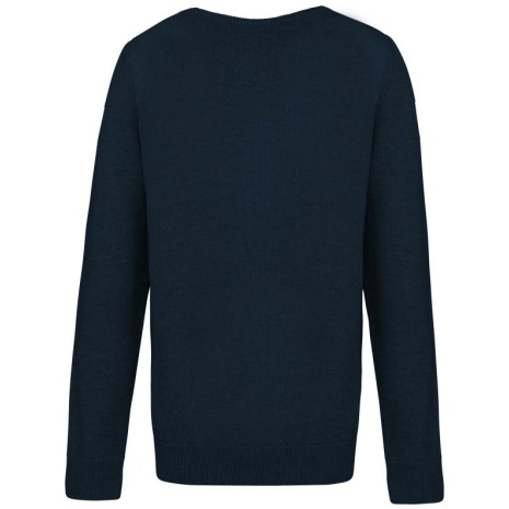 Trui met V-hals kindย V-hals voor een uniformstijl. Soepel en sterk materiaal. Een comfortabel, onmisbaar en trendy stuk in kinderversie. 50% katoen / 50% acryl. Acryl gaugeย 12. Ribboord met dubbele dikte aan de kraag. Nektape. Ribboord aan mouwuiteinden en onderkant.