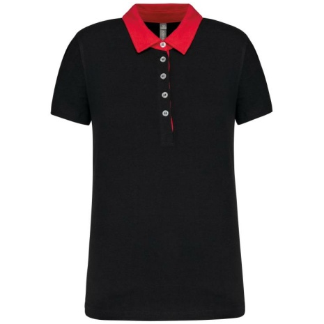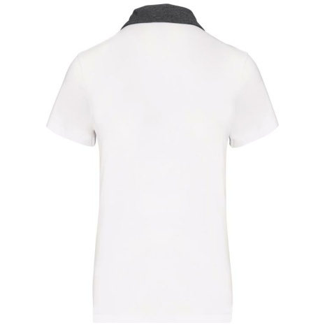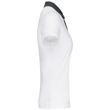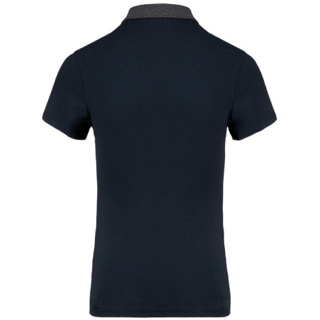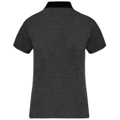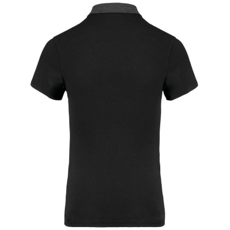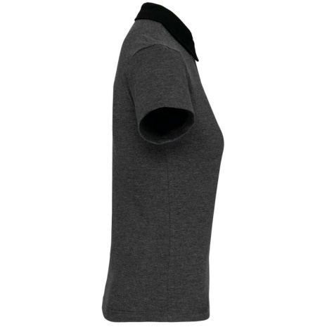 Tweekleurige damespolo jerseyย Elegante en tijdloze hemdskraag. De binnenkant van de knooplijst en de kraag zijn contrasterend. Enzymgewassen voor een glad oppervlak met een perfecte bedrukkingskwaliteit. 100% gekamd katoen enzymgewassen (Dark Grey Heather: 65% polyester / 35% katoen). Contrasterende overhemdkraag en knooplijst aan de binnenzijde met 5ย witte parelmoer knopen. Dubbel stiksel aan mouwuiteinden en onderkant.