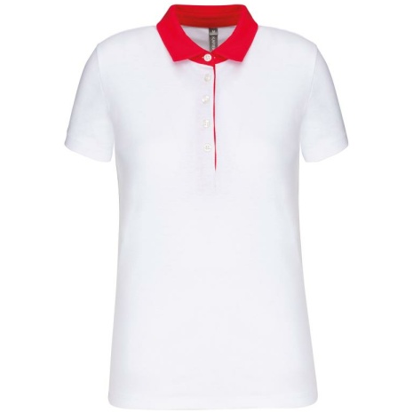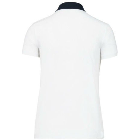 Tweekleurige damespolo jersey. Elegante en tijdloze hemdskraag.