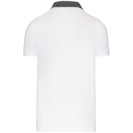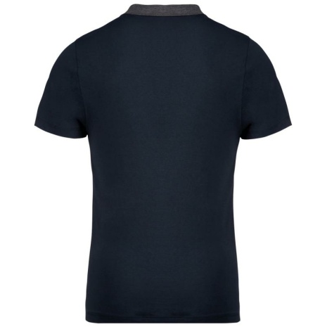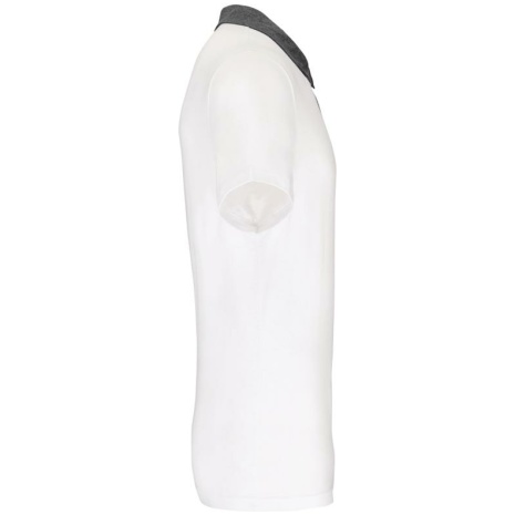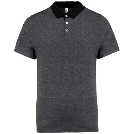 Tweekleurige herenpolo jerseyย Elegante en tijdloze hemdskraag. De binnenkant van de knooplijst en de kraag zijn contrasterend. Enzymgewassen voor een glad oppervlak met een perfecte bedrukkingskwaliteit. 100% gekamd katoen enzymgewassen (Dark Grey Heather: 65% polyester / 35% katoen). Contrasterende overhemdkraag en knooplijst aan de binnenzijde met 3ย witte parelmoer knopen. Dubbel stiksel aan mouwuiteinden en onderkant.