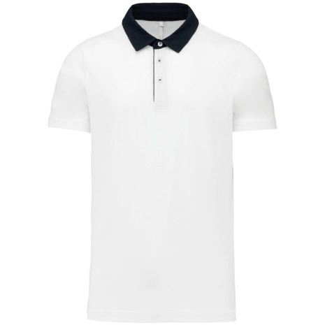 Tweekleurige herenpolo jersey. Elegante en tijdloze hemdskraag.