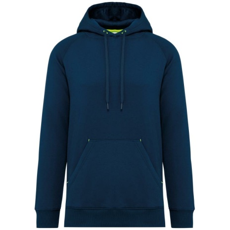 Unisex Sweatshirt met capuchon Geborsteld fleece aan de binnenkant voor meer comfort. Heel gemakkelijk te personaliseren dankzij het afneembare Tear Away-label en een speciale halvemaanafwerking aan de hals achteraan. Gemaakt met heel sterk vortex-garen. 65% polyester / 35% katoen. Vortex-garen. Geborsteld fleece aan de binnenkant. Gekamd katoen. Fitted pasvorm. Raglanmouwen. Capuchon gevoerd met toon op toon mesh. Nektape aan de binnenkant van de capuchon, ringetjes voor de koordjes van de capuchon en stoppunten in fluokleurtjes op de zakken. Kangoeroezakken met 1 fluorescerend gsm-zakje. Mouwboorden en onderzijde in 2×2 ribboord met dubbele dikte. Halvemaanvormige halsopening op de achterkant, voor eenvoudige personalisatie van het merk aan de binnenkant. Tear-away merklabel.