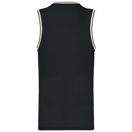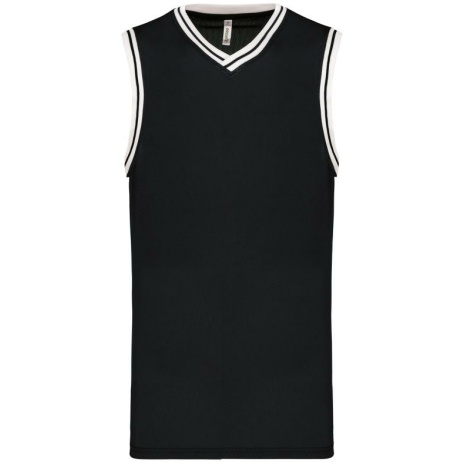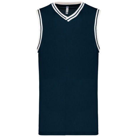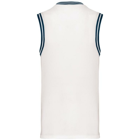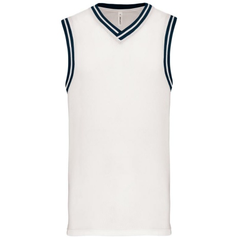 University tank top 100% polyester: heel sterk en licht. Opengewerkt tricot zodat de huid kan ademen. 100% opengewerkt tricotpolyester. V-hals. Contrasterende en gestreepte ribboord aan hals en mouwen. Afwerking met dubbel stiksel onderaan.
