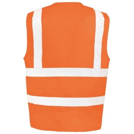 Veiligheidshesje met rits Brede reflecterende stroken rond het lichaam en één op iedere schouder. Identiteitstasje op de borst. Ritssluiting over de hele lengte. Veiligheidshesje met reflecterende stroken van 50 mm op het lichaam en de schouders. Zijzakken met verschillende dieptes en met klittenbandsluiting. Boord in dezelfde kleur. Borstzak met zakje voor toegangsbadge. Ritssluiting aan de voorkant. EN ISO 13688:2013. Fluorescent Yellow en Fluorescent Orange : EN ISO 2013+A1 :2016 Class 2. Black en Navy : EN17353:2020 (Type B3 alleen voor nachtgebruik).