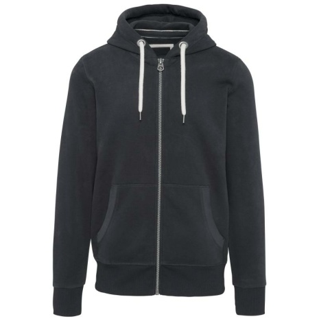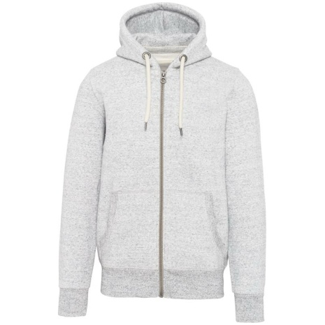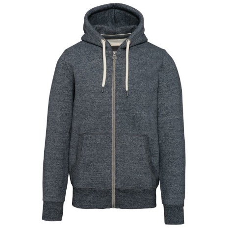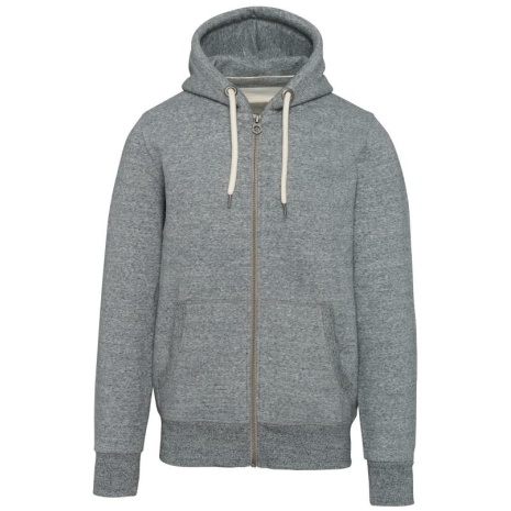 Vintage herensweater met rits en capuchonย Verouderd effect voor een unieke, trendy look. Zacht en comfortabel geborsteld fleece aan de binnenkant, met fluweelachtige afwerking. Collectie Vintage. NO LABEL. 80% katoen / 20% polyester (Ash Heather: 79% katoen / 20% polyester / 1% viscose). Geborsteld fleece aan de binnenkant. Fluweelachtig met vintage look. Metalen ritssluiting. Gevoerde capuchon. Rond en contrasterend capuchonkoordje. Dubbel nektape met visgraatmotief. Kangoeroezakken. Ribboord aan de mouwuiteinden en de onderkant. Geen merklabel, maar enkel een maataanduiding voor eenvoudige personalisatie. Dit product kreeg een speciale behandeling om het er verouderd te laten uitzien. Dit ambachtelijke procedรฉ maakt dat er kleurverschillen zijn tussen de producten, waardoor elk stuk uniek is.