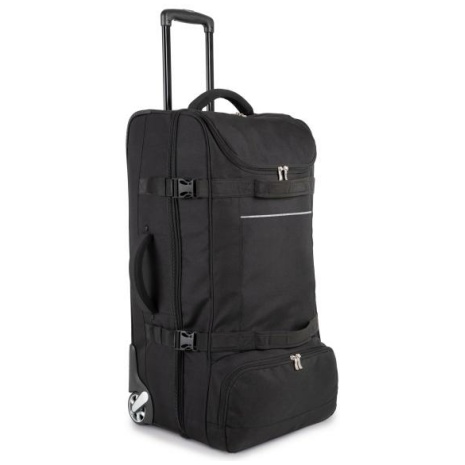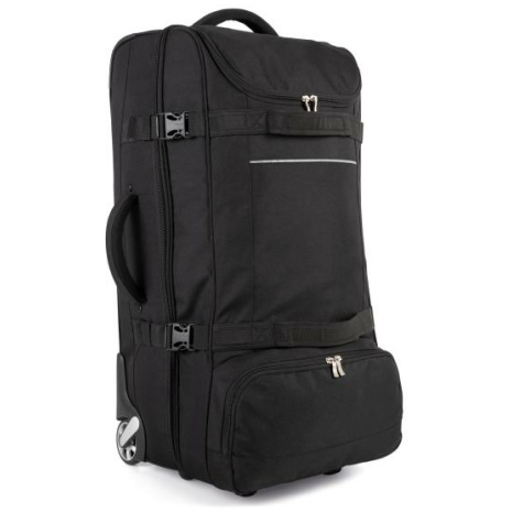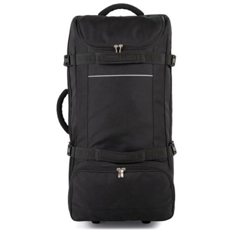 XL trolleyย Groot volume en grote wendbaarheid. Drukriemen aan elke kant, om materiaal vast te drukken. Gemakkelijk personaliseerbaar. 100 % polyester. Portefeuille opening. Opening aan de bovenkant met groot vak voor eenvoudige personalisatie. Drukriemen aan de zijkant. Verstevigingsstaven en bescherming op de achterkant. Zijdelingse handgrepen aan de bovenkant voor eenvoudige hantering, zelfs volgeladen.