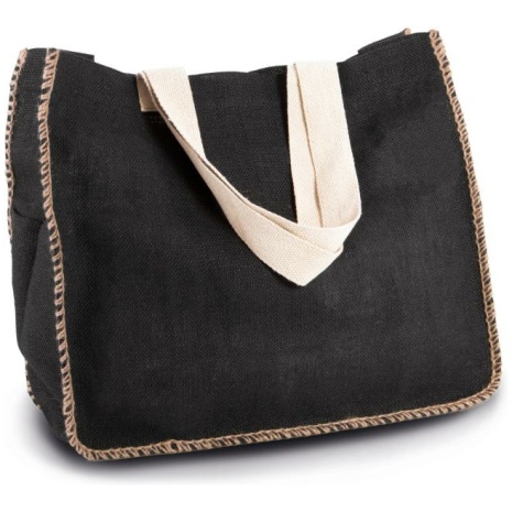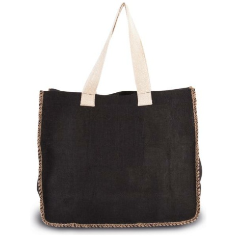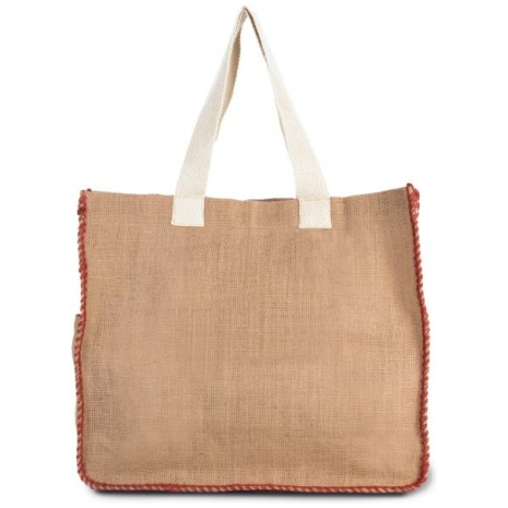Zak van jute met contrasterende naadย Mooie afwerkingen dankzij de contrasterende naden van jutedraad. Binnenzak van jute voor een stijlvolle opberging. Handvatten in katoen voor meer comfort. Niet-gelamineerde shopper met contrasterende naad van jutedraad opzij. Binnenzak van jute. Katoenen hengsel.