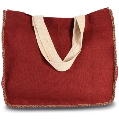 Zak van jute met contrasterende naad. Mooie afwerkingen dankzij de contrasterende naden van jutedraad.